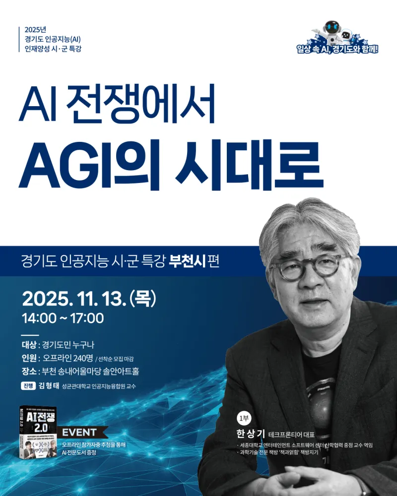 국내 최고 AI 전문가의 온라인, 오프라인 강연! 경기도 AI 리터러시 시·군 특강 부천시 편