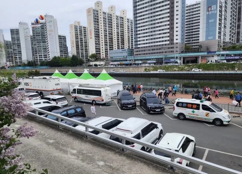 119구급차 등이 만일을 대비하여 대기 중인 모습입니다
