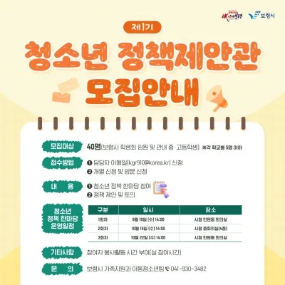 👥 모집대상 : 40명(보령시 학생회 임원 및 관내 중·고등학생)
