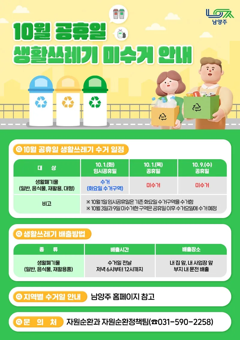 10월 공휴일 생활쓰레기 미수거 일정을 안내합니다!