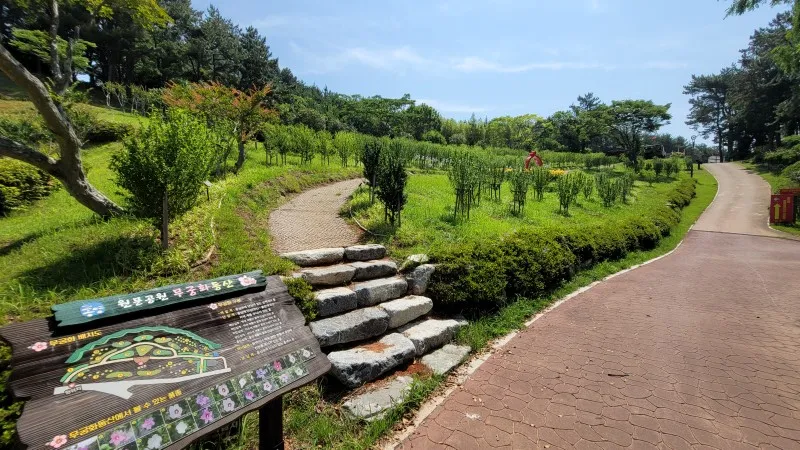 원문공원은 통영 도심으로 들어가는 길목에 있습니다. 들어서는 순간부터 도심의 묵은 일상을 날려버릴 듯 상쾌한 숲의 기운이 몰려옵니다. 푸른 하늘에 맞닿을 듯 솟은 탑이 차례로 우리를 반깁니다.