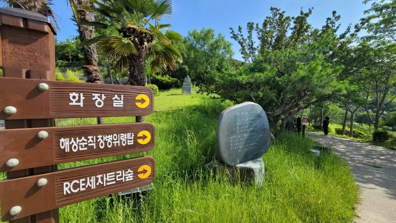 기념비 3곳을 지나 푸른 통영바다를 보면서 숨을 고릅니다. 이 아름다운 강산을 지키기 위해 헌신한 호국영령께 절로 감사의 마음이 스며듭니다.