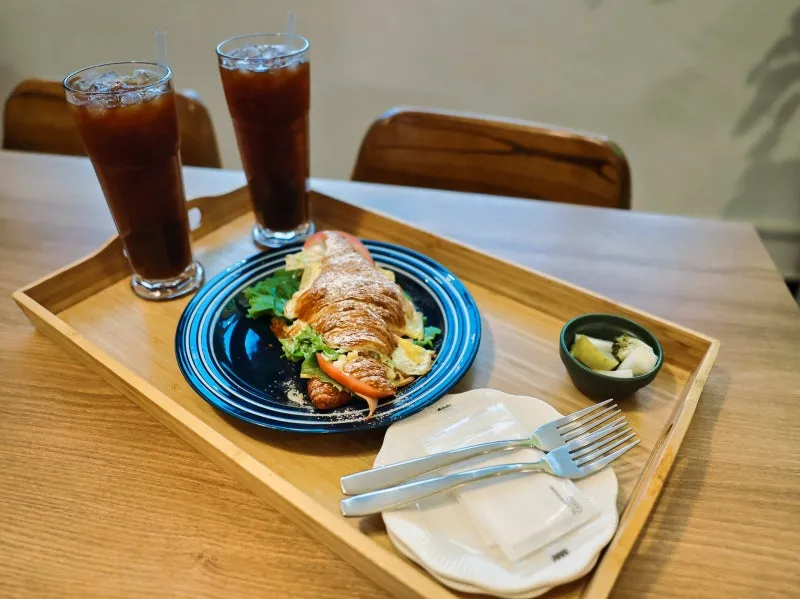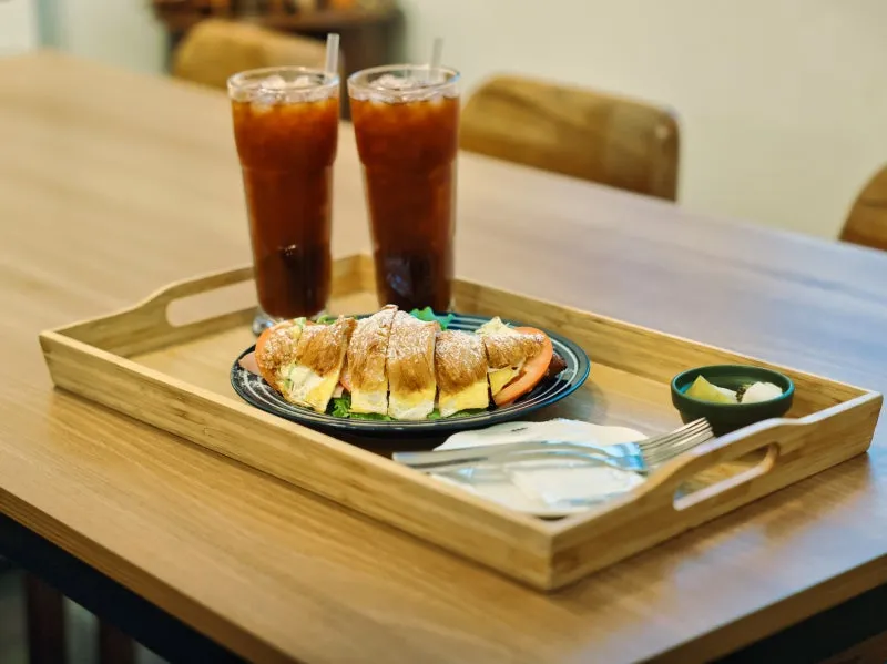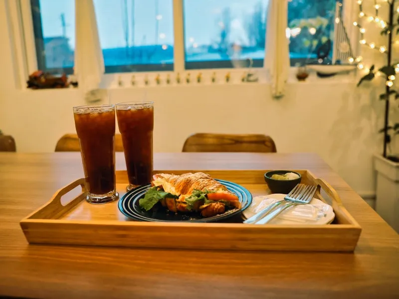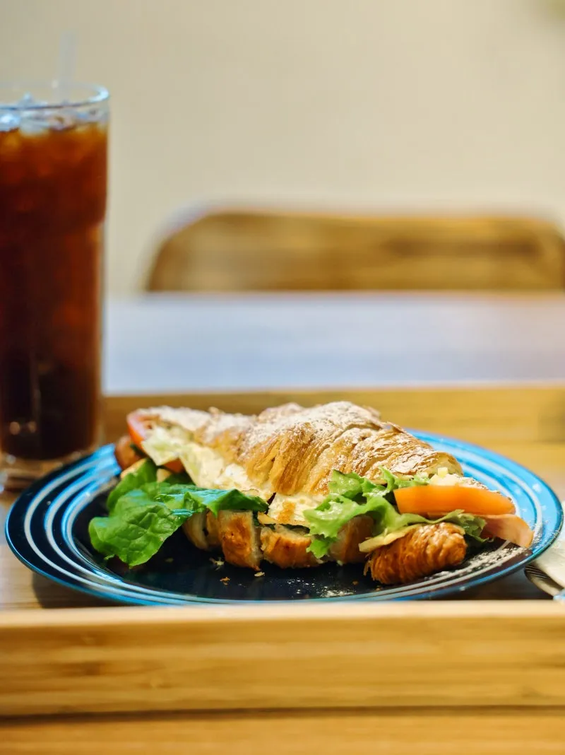원썸에 도착하자마자 내부를 둘러보기 전에 일단 주문부터 했습니다. 약간 늦은 점심에 방문해서 배가 무척 고팠기 때문인데, 주문한 메뉴는 원썸의 시그니처 메뉴인 크로와상 샌드위치입니다. 카페에서 직접 구운 크로와상에 직접 만든 콘슬로우와 로메인 상추, 체다치즈, 햄, 토마토 마지막으로 계란이 들어간 샌드위치입니다. 크로와상으로 만든 샌드위치는 이날 처음 먹어본 것 같았는데, 바삭한 식감이 의외로 잘 어울려서 놀랐습니다. 음료로는 아이스 아메리카노를 주문했는데, 제가 생각했던 것보다 사이즈가 커서 놀랐습니다. 크로와상 샌드위치 역시 사이즈가 상당한 편이어서 식사 대용으로 충분한 정도였고 소식하는 사람이라면 둘이 먹어도 충분할 정도의 사이즈였습니다.