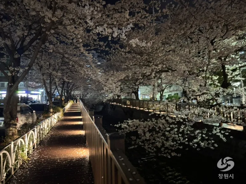 아름다운 벚꽃터널 사이로 흐르는 소하천이