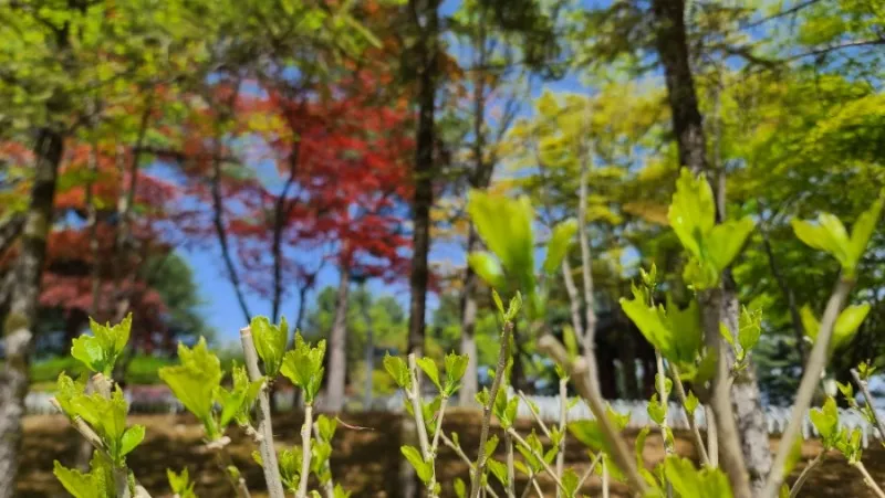 긴 겨울동안 잠들었던 무궁화도 잎을 피워낸다.