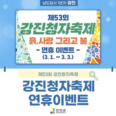 {"title":"🎉제53회 강진청자축제 연휴 이벤트!","source":"https://blog.naver.com/gangjingun/223778334601","blogName":"☆반값 여..","domainIdOrBlogId":"gangjingun","nicknameOrBlogId":"강진군","logNo":223778334601,"smartEditorVersion":4,"meDisplay":true,"lineDisplay":true,"outsideDisplay":true,"cafeDisplay":true,"blogDisplay":true}