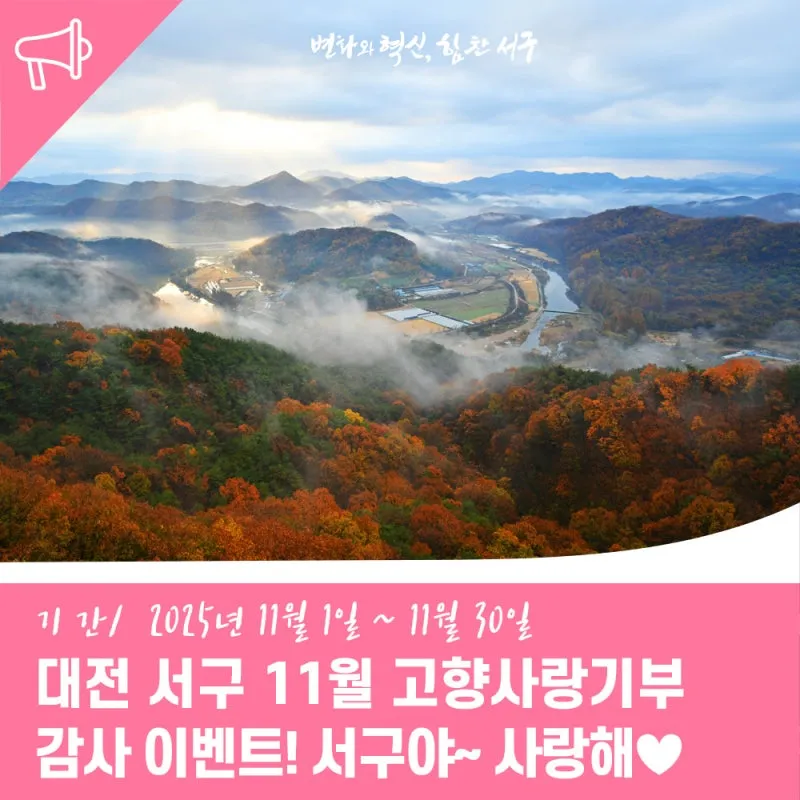 📢 대전 서구 11월 고향사랑기부, 감사 이벤트! 서구야~ 사랑해♥💕