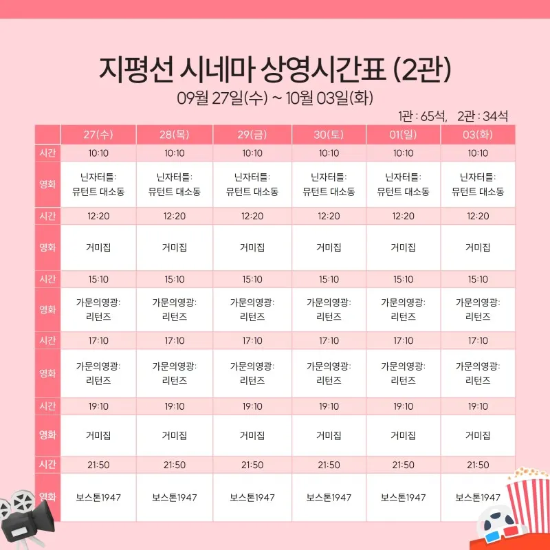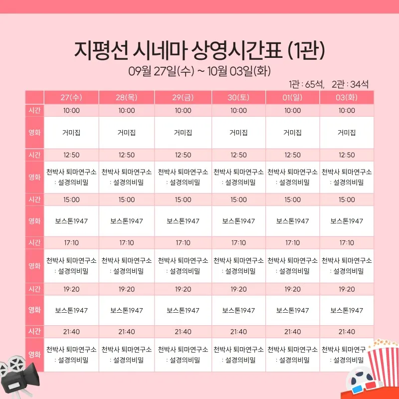 지평선 시네마 상영시간표 안내(9월 27일 ~ 10월 03일)