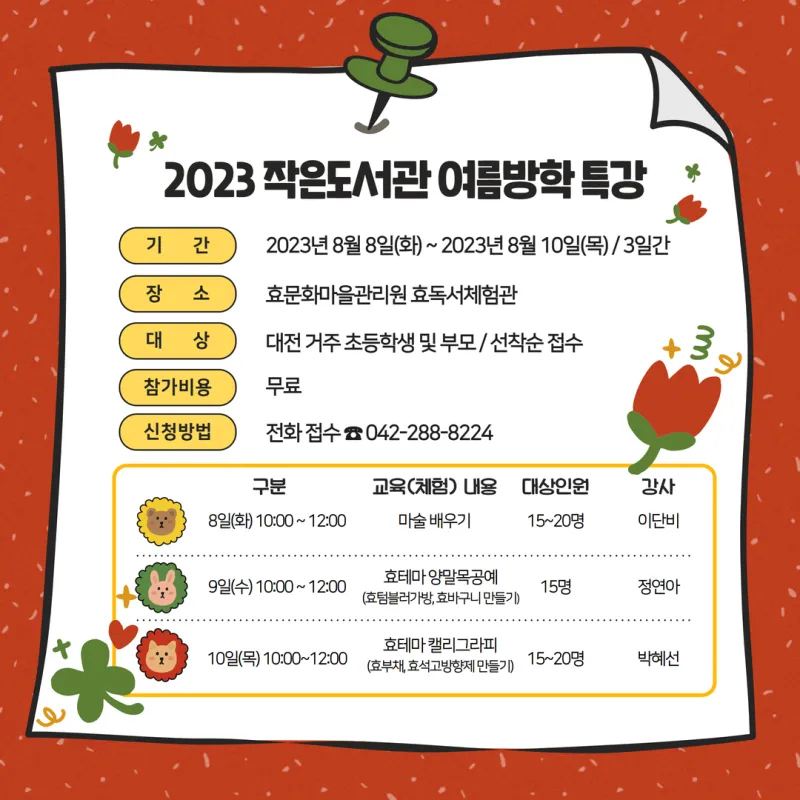 2023 대전 중구 작은도서관 여름방학 특강 듣자!