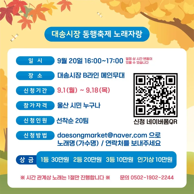- 시민참여 노래자랑 : 9.20.(토)