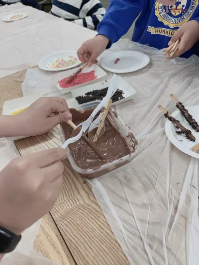 피자가 구워지는 동안 간식으로 준비한 "빼빼로"를 만들 건데요, 초콜릿을 중탕으로 녹인 뒤 여러 가지 필링으로 맛있고 달콤한 빼빼로를 함께 만들어 봤답니다.