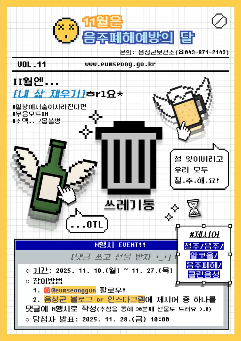#음성 #음성소식 #음성군보건소 #금주 #절주 #금주캠페인 #술은적당히 #음주폐해예방 #음주예방 #N행시이벤트 #클린음성