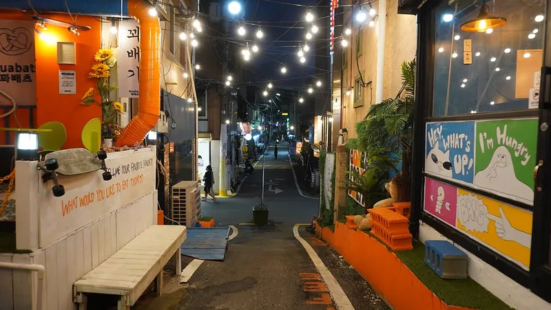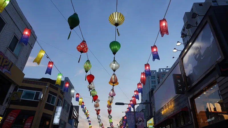 알록달록 청사초롱 흔들리는 신장동 쇼핑몰 밤 풍경 데이트코스입니다.
