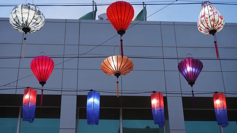 청사초롱을 비롯해 중국과 베트남풍의 등에 조명이 들어옵니다.