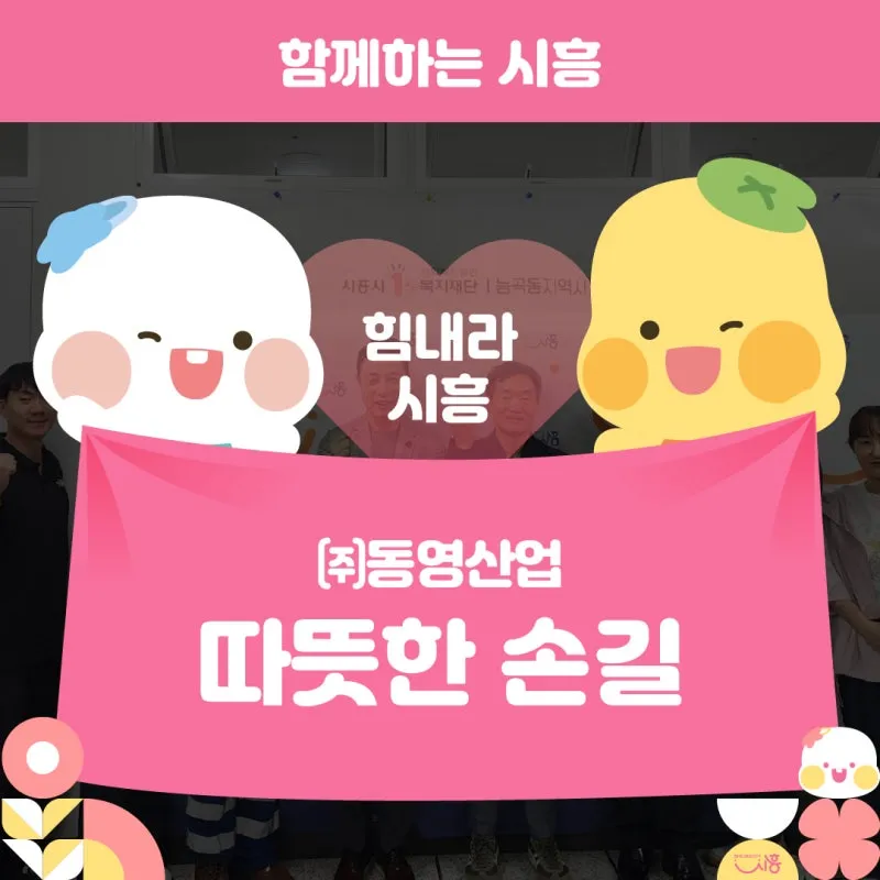목감동장과 지역사회보장협의체 민간위원장은 “지역사회를 위해 지속적으로 나눔을 실천해 주시는 동영산업 대표와 직원들에게 감사하다”라며 “전달된 성금은 소외된 이웃과 복지 사각지대 해소를 위해 소중히 사용하겠다”라고 말했습니다.