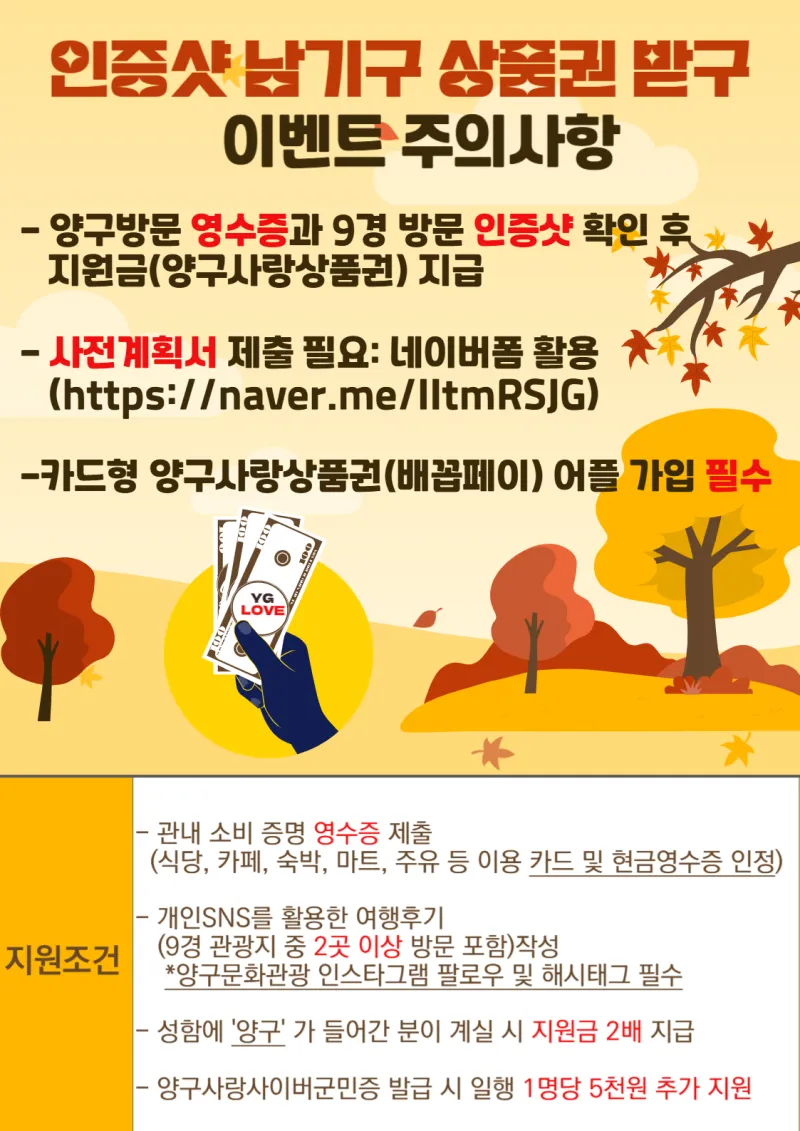 ✅양구방문 영수증과 9경 방문 인증샷 확인 후 지원금 지급