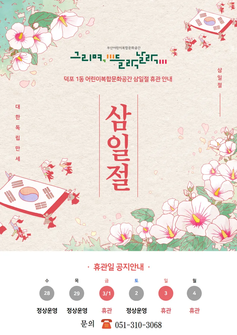 그리며 들락날락 「삼일절 휴관」 안내
