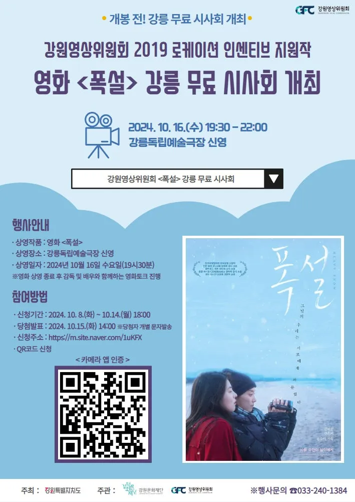 영화 <폭설>의 강릉 무료 시사회 개최를 안내드립니다.