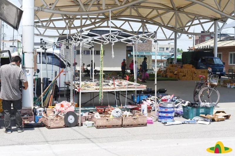 무대가 있는 광장 한편엔 철물장수와 늦은 모종을 파는 농부들이 자리를 잡고 있습니다. 늦게 심어도 잘 자란다는 말에 고추 모종 한 판, 상추 모종 한 판을 사 가시는 모습이 정겹습니다. 장날마다 오는 분들끼리는 서로 인사를 나누고, 이젠 얼굴을 아는 사이가 되어 "고추는 잘 자랐어요?" 하고 안부를 묻는 대화가 오가기도 합니다.