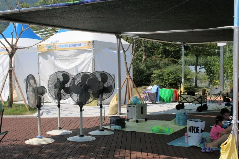 대형 선풍기도 여러 대 준비되어 있어 바람이 불지 않아도
