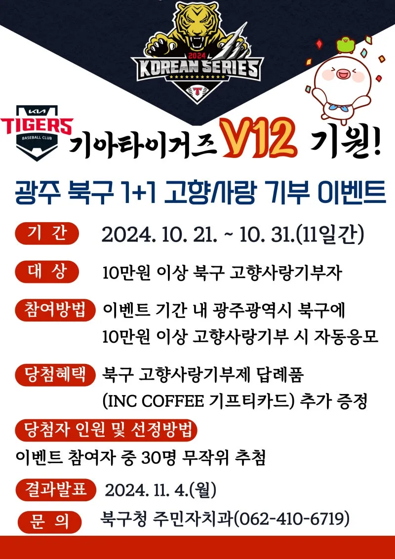 한국시리즈 기아우승 기원! 고향사랑 1+1 기부 이벤트