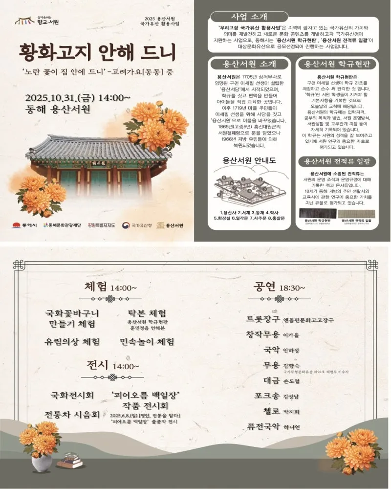 #동해용산서원 #동해공연 #동해체험 #동해문화 #동해문화관광재단 #국가유산청 #용산서원