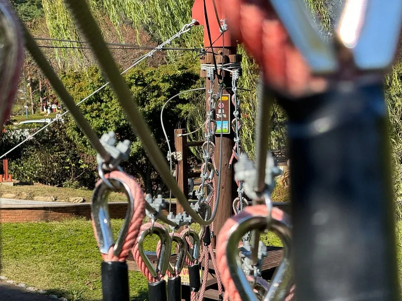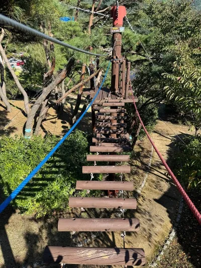 202m의 짚라인과 흔들 다리 등