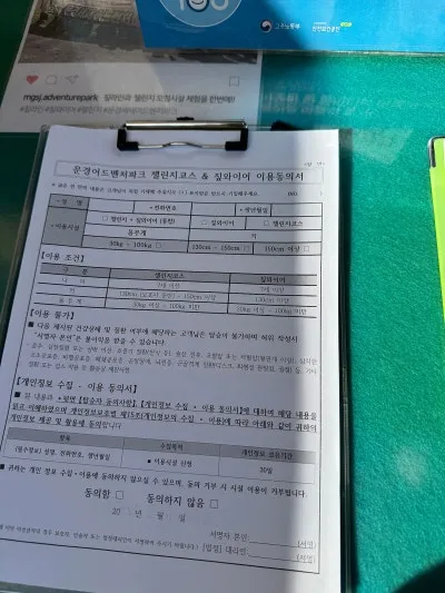 바로 옆에 챌린지코스 & 짚라인 이용 동의서가 있답니다.