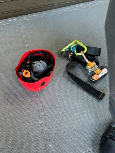 직원의 안내를 받아 장비를 착용하고