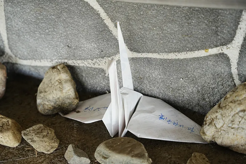 종이로 만든 종이학도 있습니다. 어쩌면 김할배의 손길이 닿지 않는 시간에 공연한 훼손하는 사람들도 있었는가 봅니다.