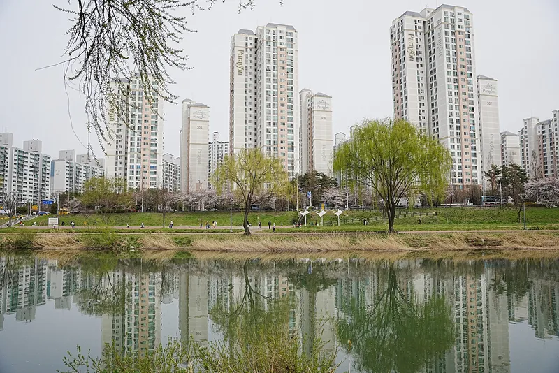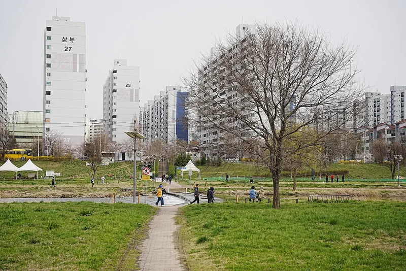 좀 멀긴 하지만, 전체적으로 보여드리기 위해 태평교 아래쪽부터 약 2킬로 정도 되는 거리를 걸어보았는데요. 태평교 아래쪽에는 나이가 많으신 어르신이 공놀이를 하고 계셨고, 장기를 두고 있는 모습도 보였습니다.