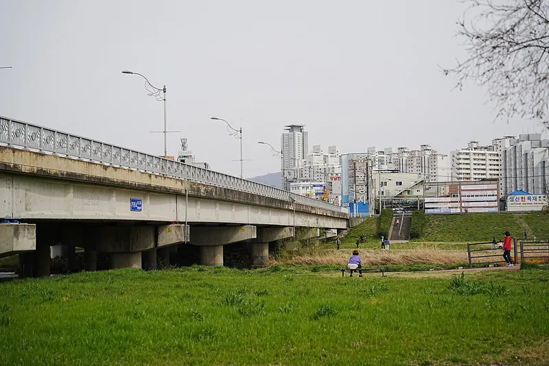 다리 위의 풍경은 바쁘고 열심히 달리는 생활입니다. 하지만 다리 아래에서는 유등천을 따라 편안하고, 휴식이 있는 삶입니다.