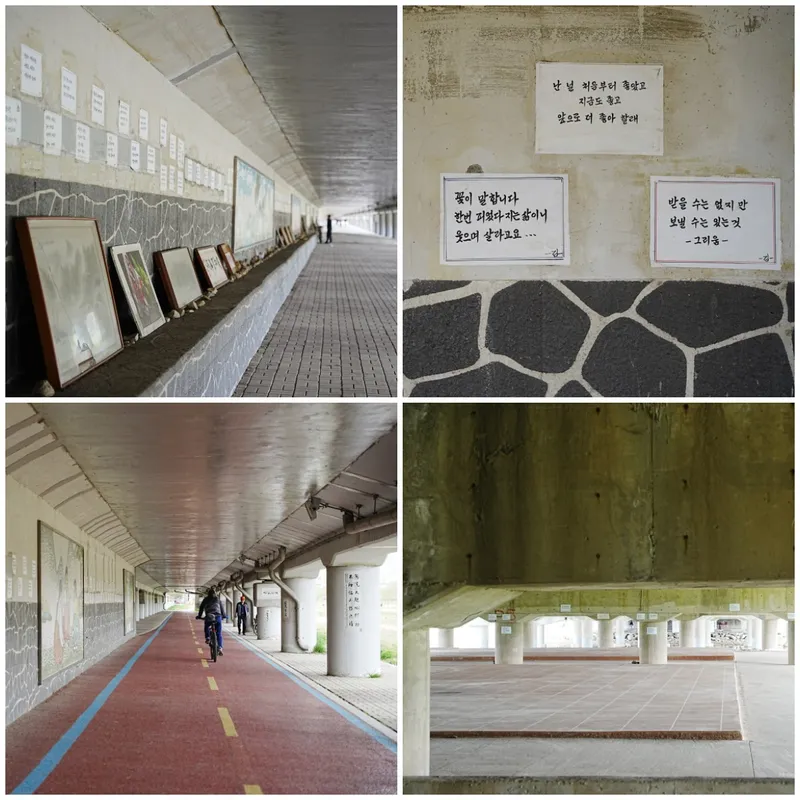 다시 갤러리가 있는 굴다리 아래쪽으로 들어와 봅니다. 안쪽에도 자전거가 달릴 수 있습니다.