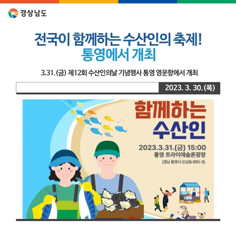 3.31.(금) 15시, 통영 영운항에서 제12회 수산인의날 기념행사가 개최됩니다!