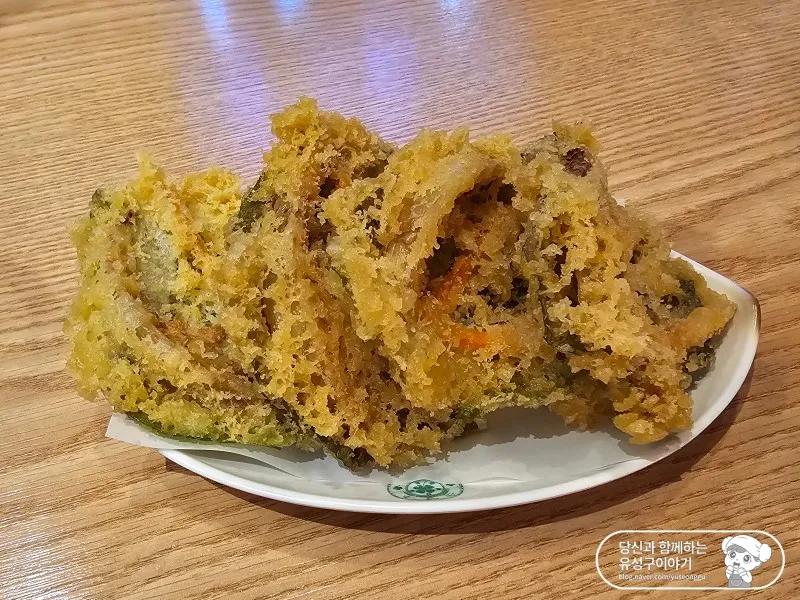 깻잎 튀김은 깻잎만 튀긴 것이 아니라 채소튀김처럼 당근과 양파도 조금 들어가 있어 더욱 맛있더라고요. 튀김류를 좋아하신다면 절대 후회하지 않으실 거라고 자부하는 맛입니다.
