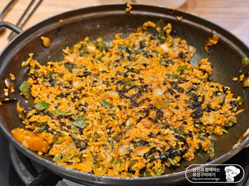 마지막으로 셀프날치알볶음밥까지 주문하였습니다. 밥을 볶아먹을 수 있다는 것이 즉석떡볶이의 또 다른 매력이죠. 일단 소스가 맛있으므로 볶음밥은 두말할 필요가 없이 성공적인 맛입니다.