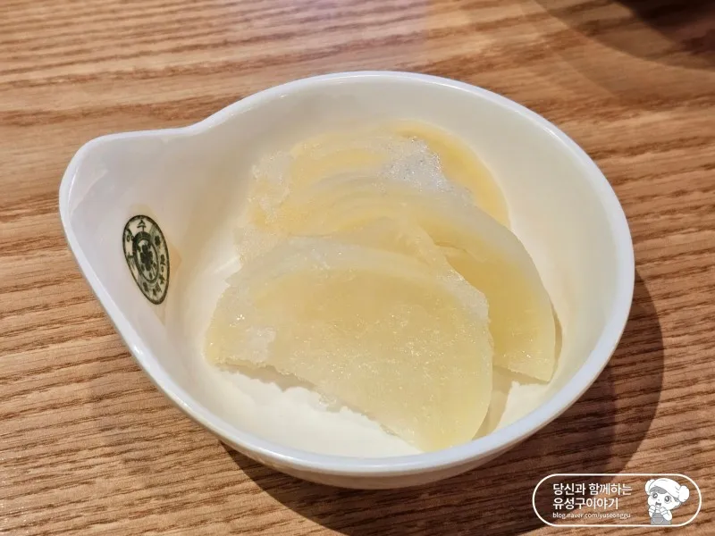 분식집의 밑반찬이라고나 할까요? 단무지를 내어주셨는데 다른 식당들과 달리, 단무지에 살얼음이 붙어있습니다. 살짝 얼린 단무지여서 시원하기도 하고 식감이 더욱 아삭했어요.
