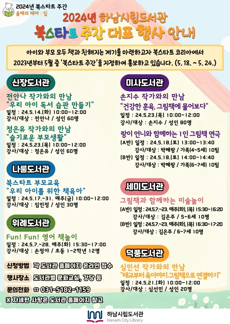 하남시립도서관은 올해 북스타트코리아 선정 주제인 ‘집’에 맞춰 다양한 이벤트와 프로그램, 강연 등을 준비했다.