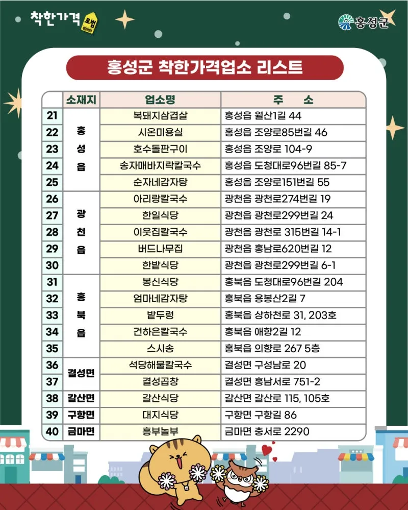 ✅ 홍성군 착한가격업소