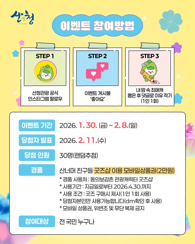 1) 산청관광 공식 인스타그램 계정 팔로우