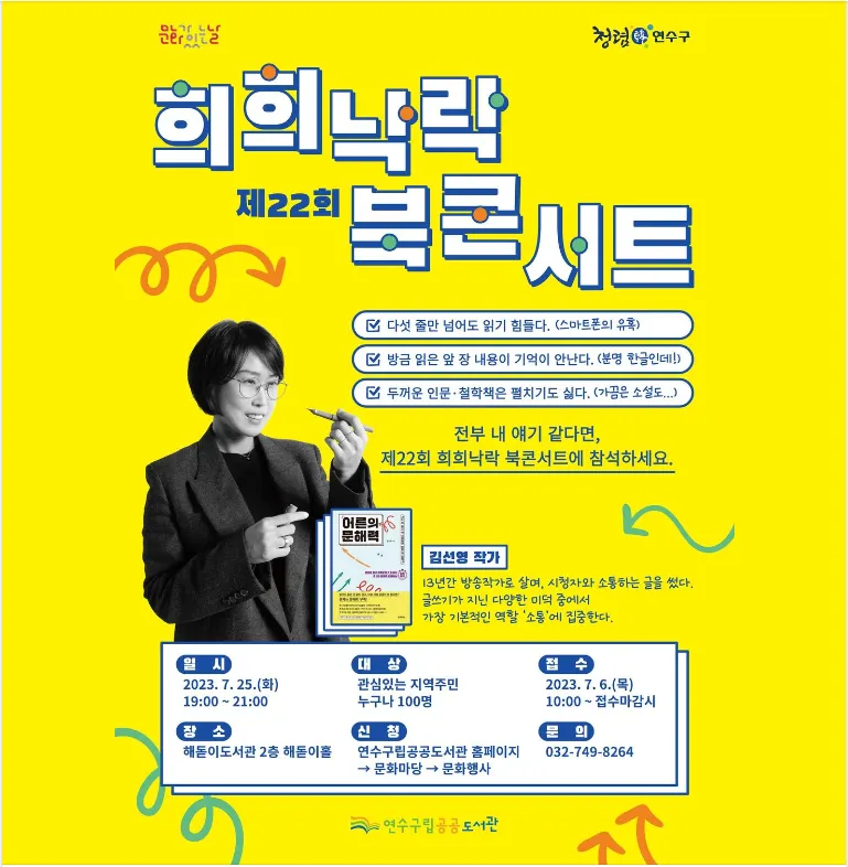 해돋이도서관 '희희낙락 북콘서트' 책을 읽고 글을 써보자.