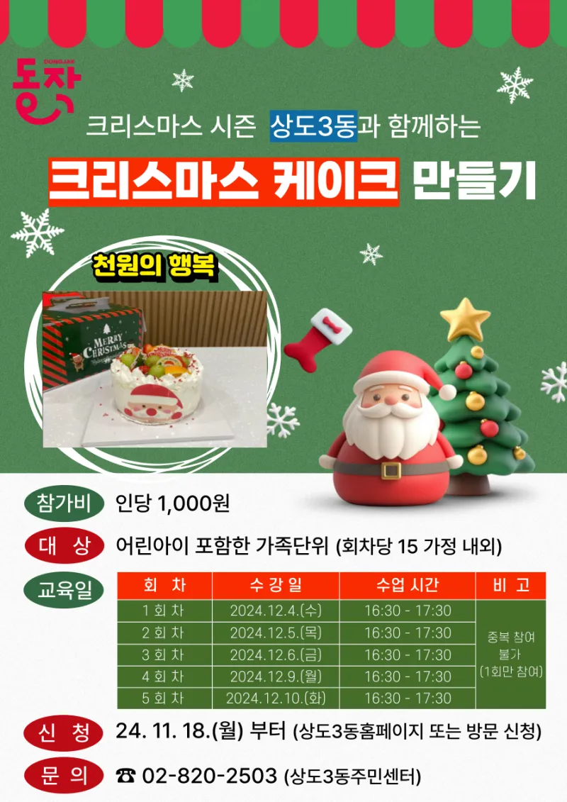 크리스마스 시즌 상도3동과 함께하는 ‘크리스마스 케이크 만들기’