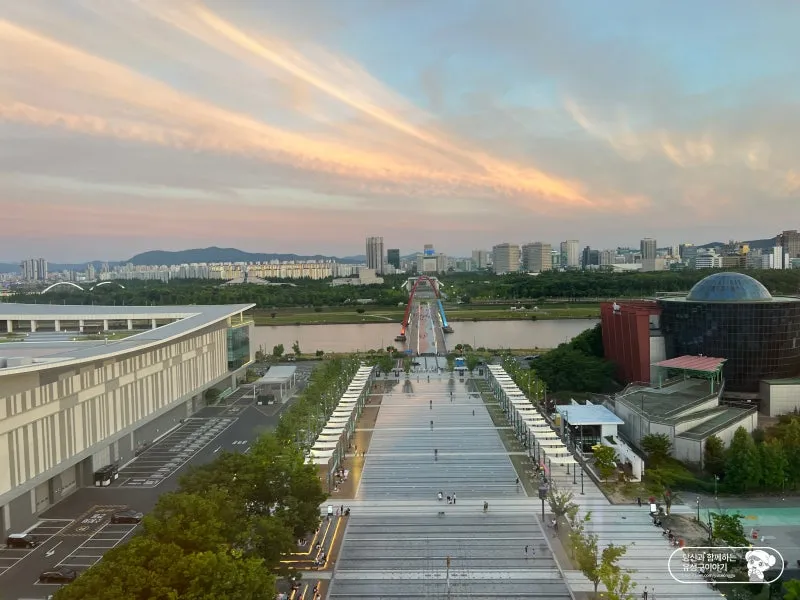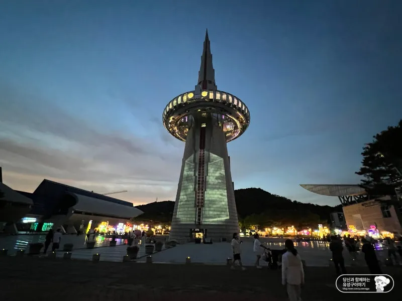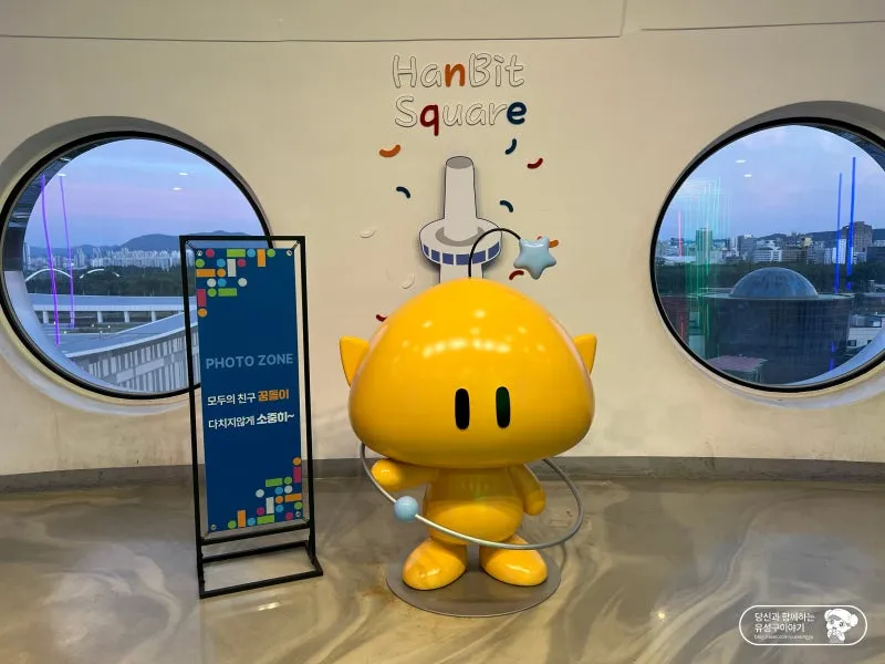 한빛탑 광장에 왔으니 한빛탑에도 올라가 봐야죠. 한빛탑은 대전엑스포가 열린 1993년 세계 박람회를 기념하기 위해 세워진 조형물인데요. 우주를 모티브로 설계하고 현재와 미래를 잇는 한줄기 빛이라는 뜻을 가진 이름과 함께 대전엑스포의 상징이 되었습니다.