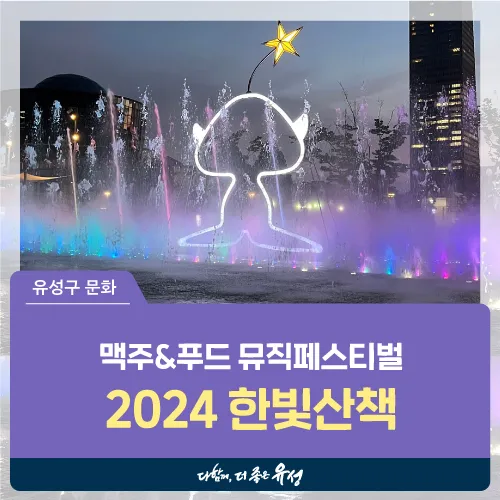 무더운 여름 대전 유성구 한빛탑광장에서 열리는 2024 한빛산책 맥주 & 푸드 뮤직페스티벌 현장에서 음악분수와 함께 시원한 맥주도 즐겨보세요.