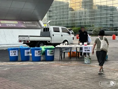 무더위가 사그라지는 저녁부터 시작하는 축제가 노을이 아름답게 지기 시작하는 시간이면 시민들의 발걸음이 한빛탑으로 향합니다. 하루의 피로를 풀고 더위를 식히며 맛있는 음식과 맥주를 마실 수 있었는데요. 축제장 인근의 청결과 안전을 위해서도 노력을 하고 있습니다.