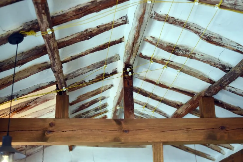 걸쳐 대고 지붕널을 덮고 있는 서까래가 멋스럽습니다.