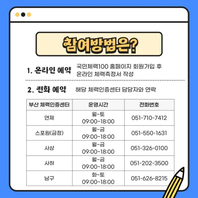 ◾ 기간 : 2025. 9월~11월 매주 1회, 15시~21시(총 9회) ◾ 장소 : 광안리해수욕장/시민공원/송도해수욕장 ◾ 내용 : 시민 누구나 매주 일상적 참여 가능한 생활체육 프로그램, "유명 운동 인플루언서" 가 직접 프로그램 지도, 운영 ◾ 접수 : 홈페이지 온라인 접수 |