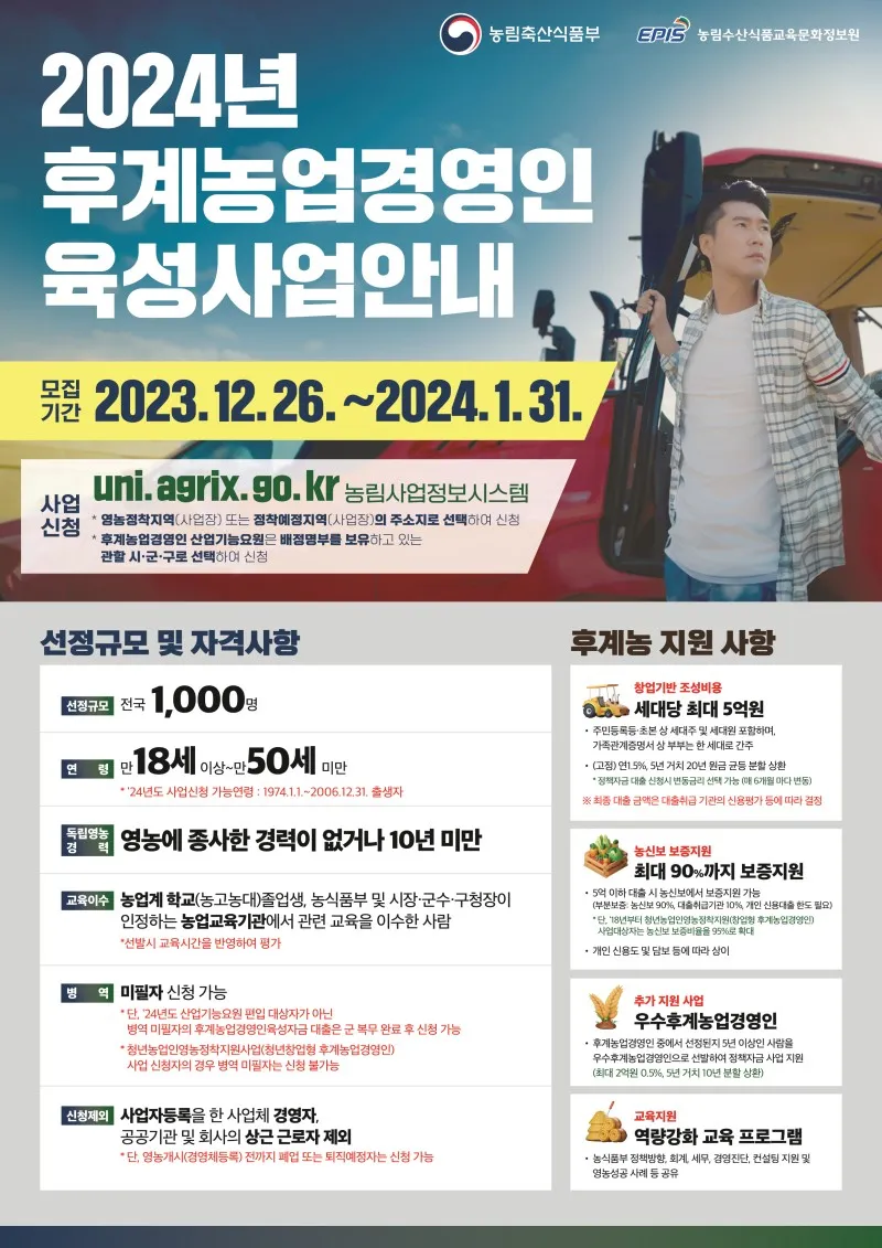 후계농업인·청년농업인이라면 지금 신청하세요.