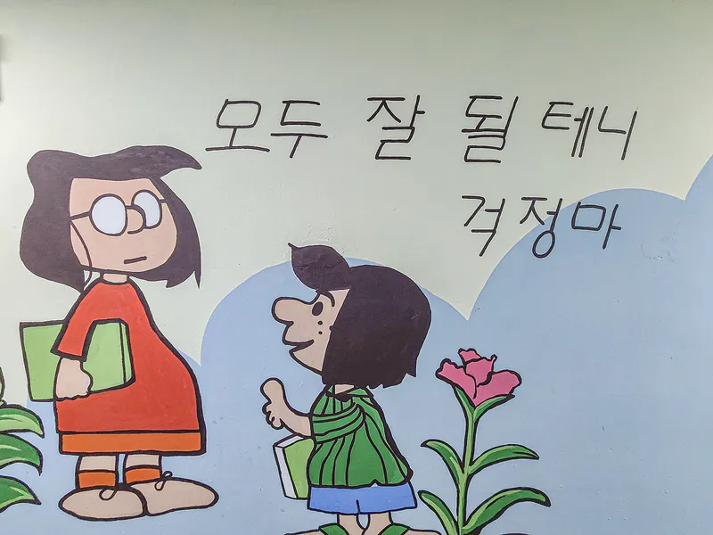 화사한 분위기를 내고자 벽화를 그려놓았더라고요.