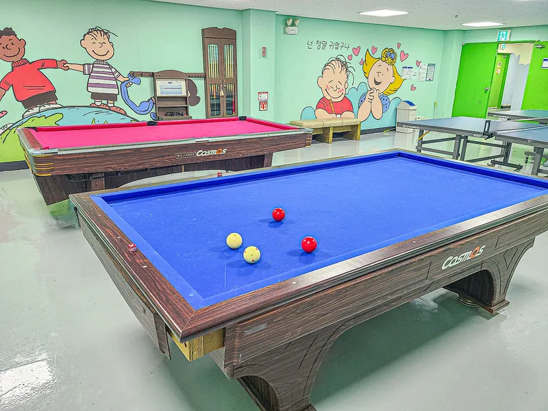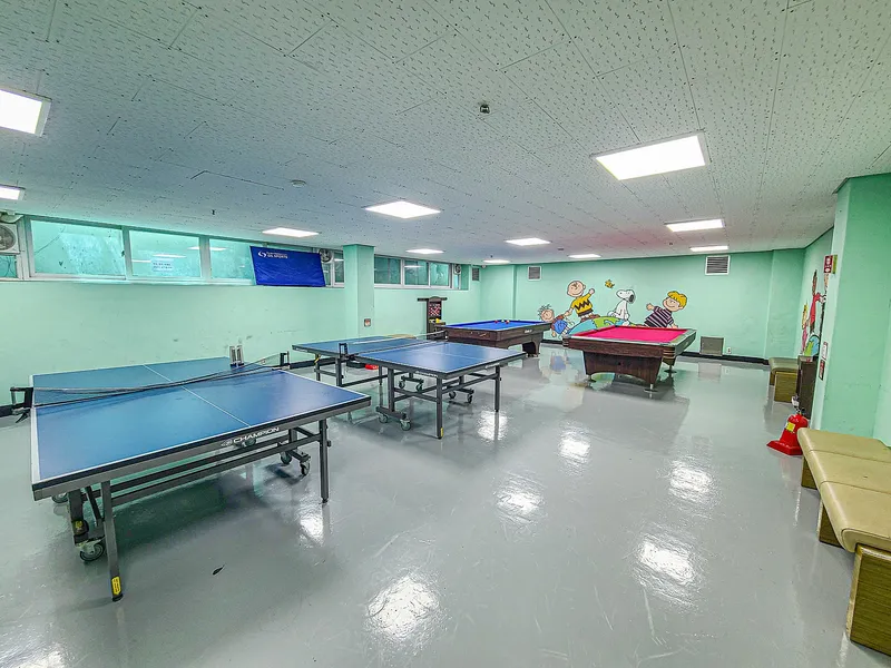 지하 1층에서는 아이들이 탁구, 당구 등의 스포츠를 즐길 수 있습니다.